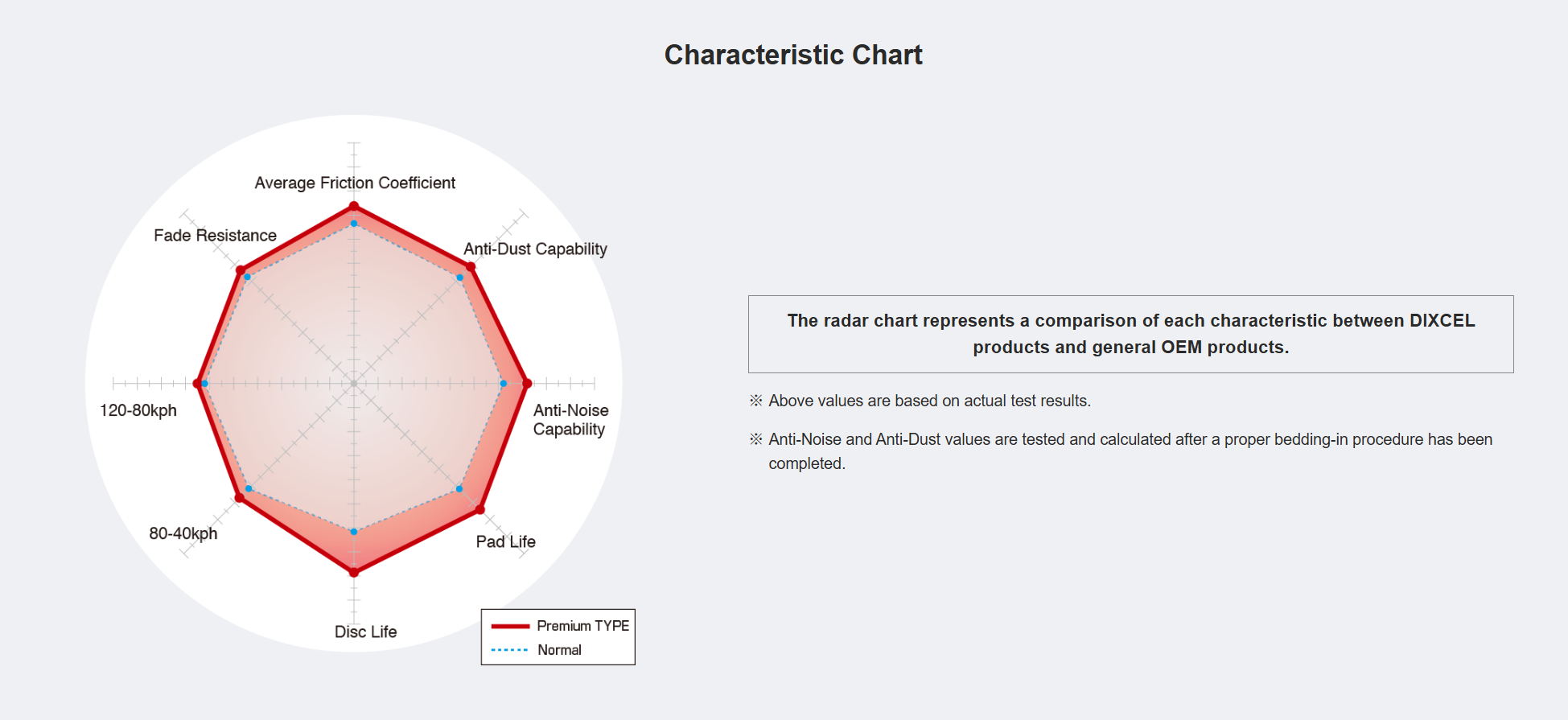Brake dynamometer/Fade test 2nd section:Max. μ:0.58/Ave. μ:0.40/Min. μ:0.39